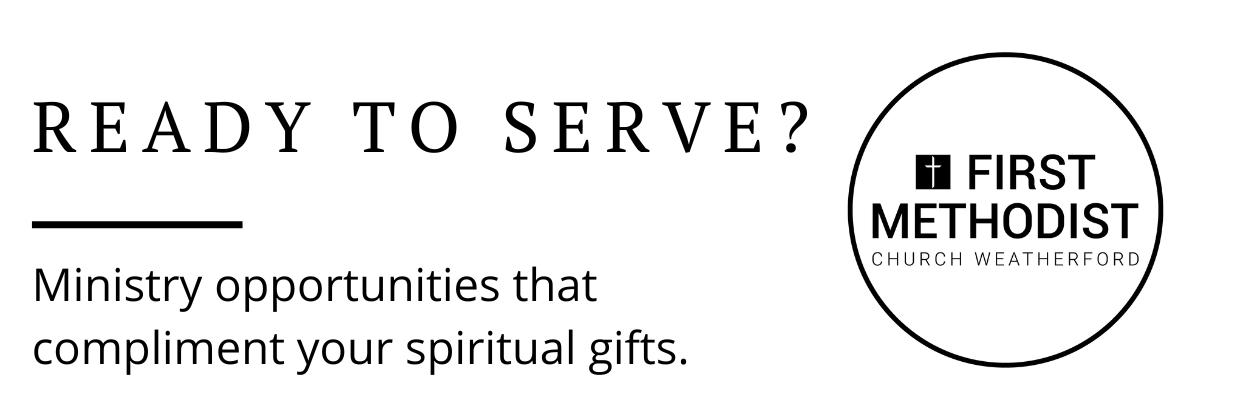 The Bible tells us in 1 Corinthians 12:7, “To each is given the manifestation of the Spirit for the common good.” We believe at First Methodist Church Weatherford that giving of our prayers, presence, gifts, service, and witness is a way that we show he love of God to our community and world. If you are ready to discover how you can serve, take the quiz below and then return to this site to explore how your unique gift can be put into service. If you would like us to help you figure out how to plug in, send your PDF results to info@fumcw.org and we will give you a call and help you find the right place to serve!